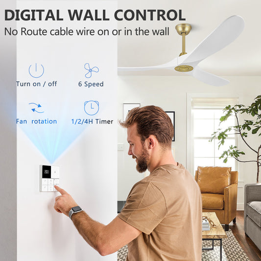Ceiling Fan Without Lights 52 60 72 88 Inch Large Ceiling Fan, Outdoor Ceiling Fan No Lights with Wall and Remote Control, 3 Blade Solid Wood Indoor Outdoor Ceiling Fans for Patios ETL Listed-White gold