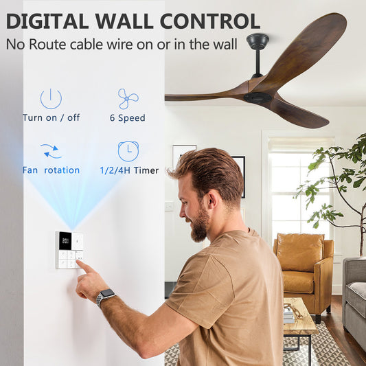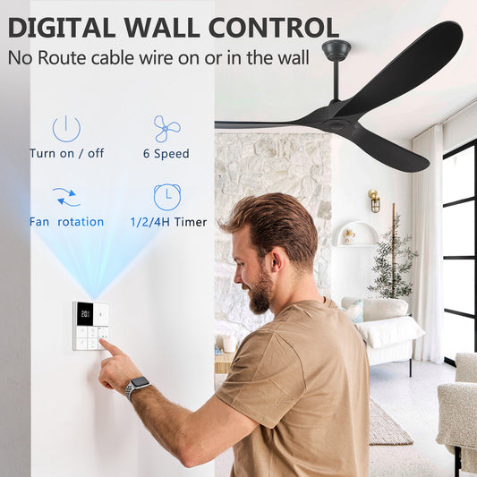 Eliora Ceiling Fan without Light, 52 60 72 88 Inch Wood Ceiling Fan no Light with Remote Wall Switch, Outdoor Ceiling Fan for Patio, Porch, Bedroom, 6 Speed, Quiet DC Motor, ETL Listed-Black