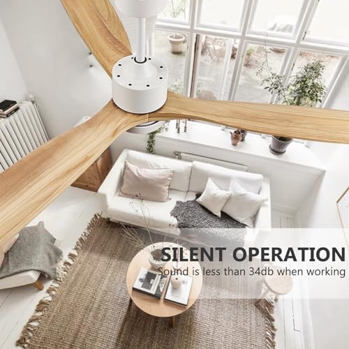 Eliora 52 60 inch Ceiling Fans with Lights and Remote Control, Outdoor Ceiling Fans for Patios, 3 Solid Wood Blades, Quiet DC Motor, Ceiling Fans with light, ETL Listed(Nature Wood)